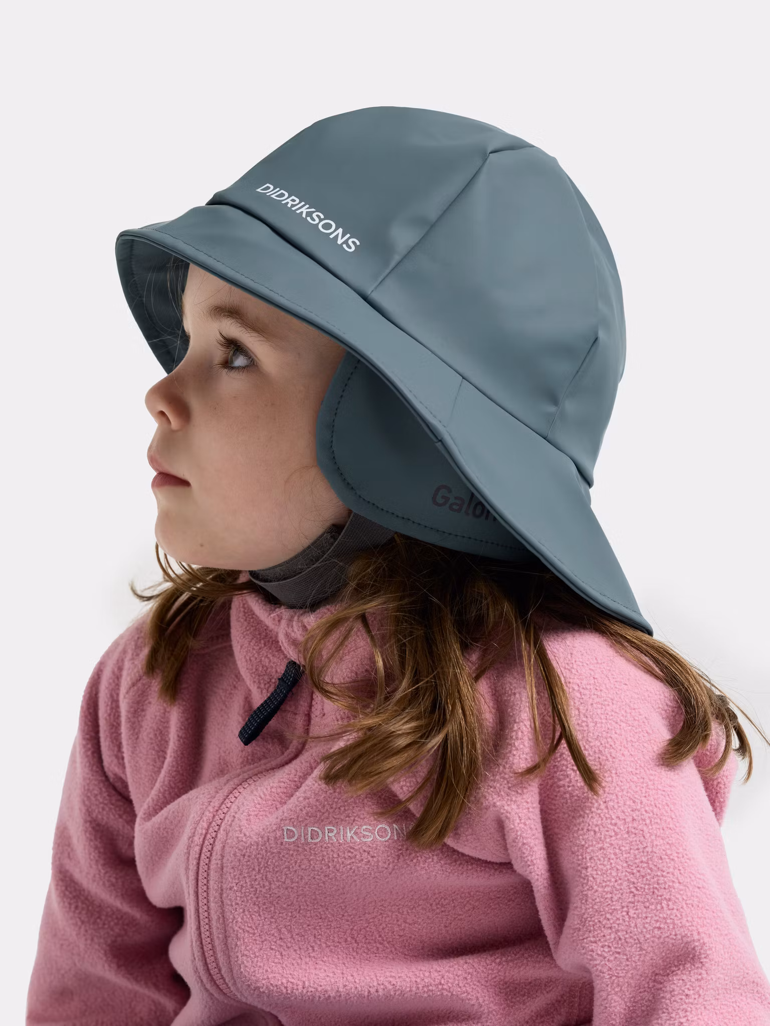 Southwest (sydväst) är en praktisk regnhatt från Didriksons i många läckra färger. Denna sydväst har extra skydd kring öronen och ett smidigt kardborrband under hakan som håller hatten på plats. Den är självklart helt vind- och vattentät med svetsade sömmar som inte släpper igenom någon väta. Insidan är i trikå, utsidan är tillverkad av Galon®. Den självklara hatten för de regniga dagarna!