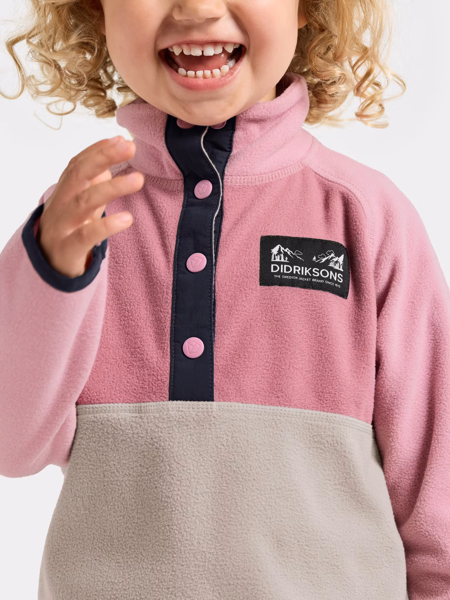 Monte är en mjuk och skön tröja från Didriksons, designad för lek och extra rörelsefrihet. Perfekt för flera tillfällen, funkar som tröja både inom- och utomhus under vår och höst men även som ett mellanlager under vintern. Tillverkad i värmande mikrofleece och tillverkad i fyrvägsstretch för maximal flexibilitet och komfort. Tröjan har en mjuk krage och knappar på övre delen med logga på bröstet.