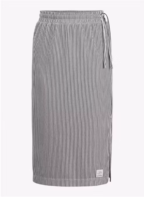 W Brassie Skirt är en vadlång sommarkjol i mjuk bomulls- och polyestermix med strukturerat tyg från Pelle P. Normal passform med resår och dragsko.
