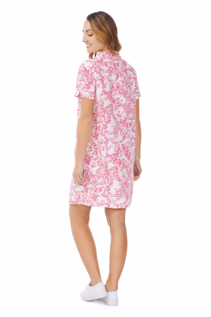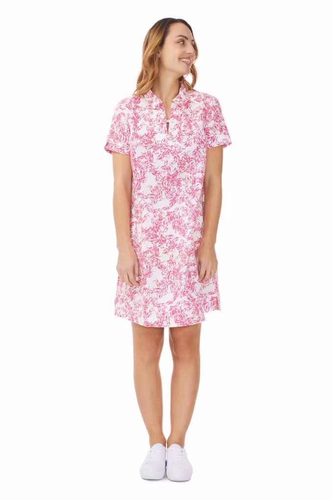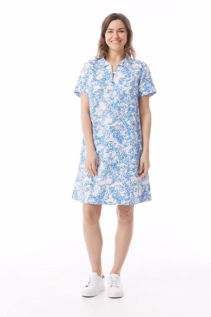 Tillverkad i en mjuk och sval blandning av ramie och bomull får du en naturlig känsla som påminner om linne – perfekt för varma dagar när komfort och andningsförmåga är avgörande. Genomtänkta detaljer som knäppning vid kragen, diskreta rynk bak och praktiska sidfickor gör klänningen både funktionell och stilren. Små slitsar ger extra rörelsefrihet och förstärker den lediga känslan.