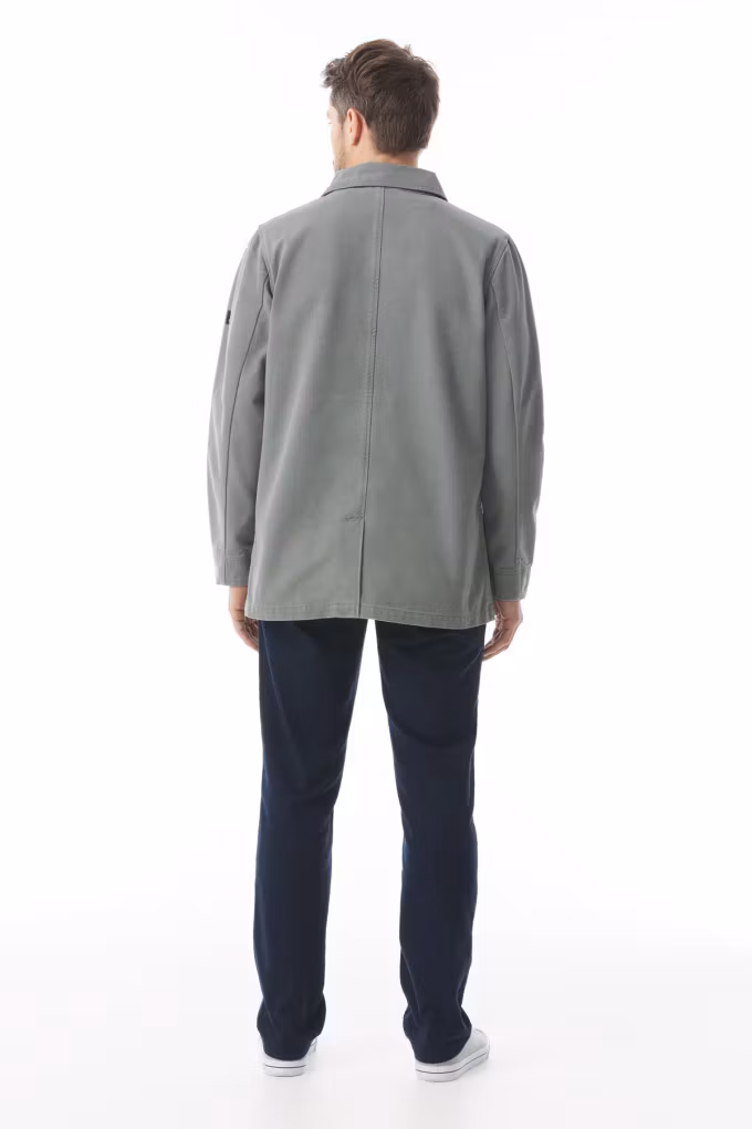 Stilren Kabarec jacka från Mousqueton i slitstark bomullscanvas. Dubbelknäppt design, rak passform och praktiska fickor – perfekt för vår och höst.