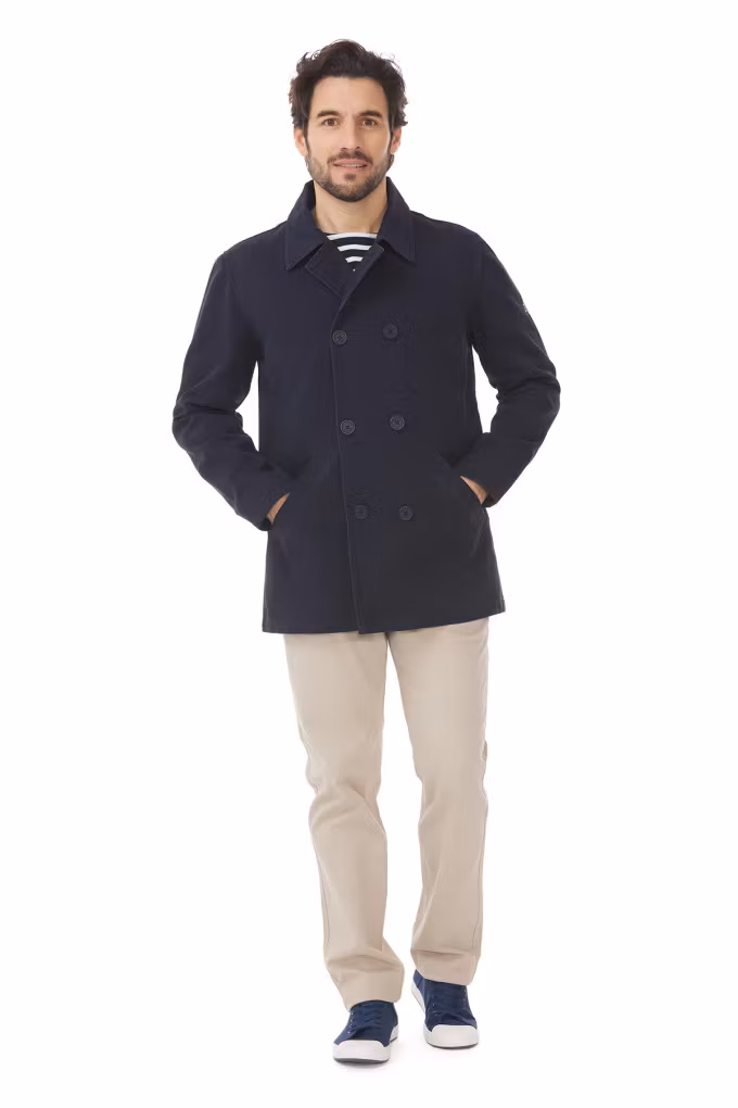 Kabarec är en tidlös peacoat från Mousqueton, inspirerad av klassiskt marint mode, tillverkad i slitstark bomullscanvas som ger både hållbarhet och komfort. Den vattenavvisande ytan gör jackan till ett perfekt val för vår och höst.