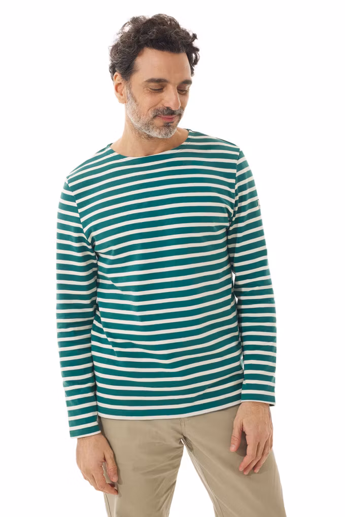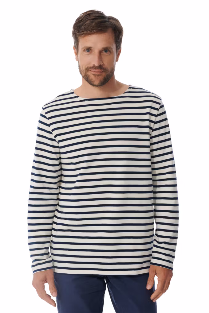 Mario är en långärmad tröja från det franska märket Mousqueton. Detta är ett fantastiskt basplagg i hög kvalité för den som vill ha något stilrent. Tröjan har en båtringning och klassisk rand i Breton/Bretagne anda. Liten slits i nederkant på båda sidorna. Perfekta tröjan för en blåsig dag på båten!